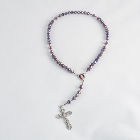 ROSARIO CRISTAL DESTELLOS MORADOS CON FOTO